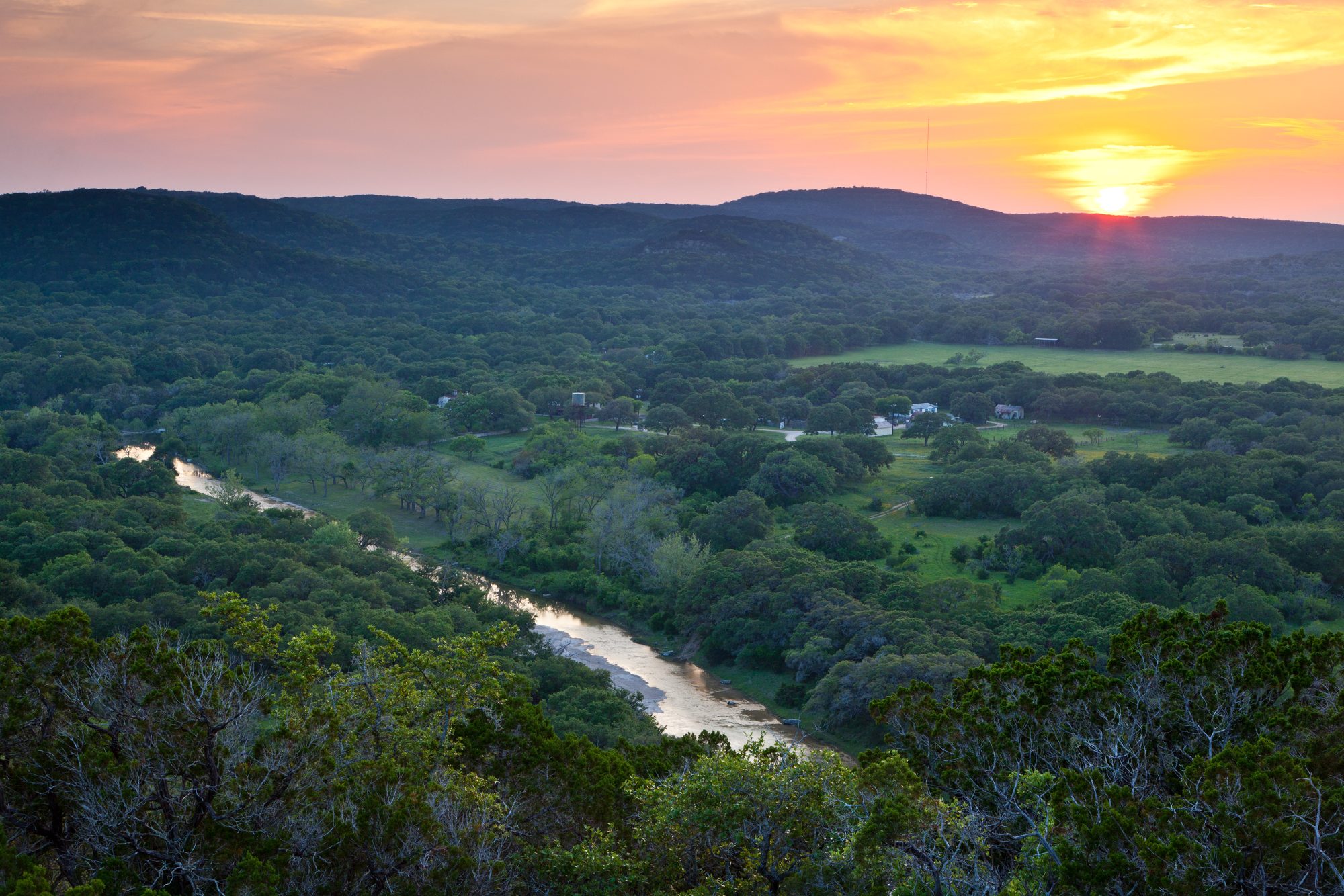 Gallagher Headquarters Ranch, a world unto itself, spans 1,509 acres of lush Hill Country mountains, clear ambling San Geronimo Creek with its deep lakes and limestone bed shoals, ancient signature Live Oaks, and one of the most historic and well restored headquarters in Texas, all within 20 minutes of San Antonio.